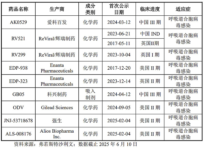 相较于单抗产品已实现规模化突破,用于RSV治疗的小分子抗病毒药物的发展则略显单薄。