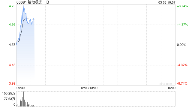 脑机接口概念股早盘活跃,截至发稿,脑动极光-B(06681)上涨5.49%,报4.61港元;南京熊猫电子股份(00553)上涨4.08%,报5.61港元;微创脑科学(02172)上涨3.51%,报11.20港元。