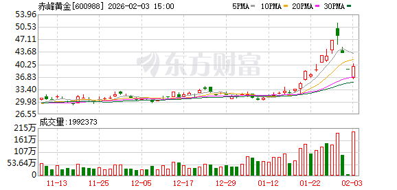 证券日报网讯 2月3日,赤峰黄金在互动平台回答投资者提问时表示,根据《上海证券交易所交易规则》等相关规定,股票价格连续三个交易日内日收盘价格涨跌幅偏离值累计达到±20%属于异常波动情形。截至2026年2月2日收盘,公司股票价格2026年1月29日、1月30日、2月2日连续3个交易日内收盘价格的偏离值累计为-13.77%,未触及股票交易异常波动情形。公司将持续关注股价波动,并严格按照相关规定履行信息披露义务。