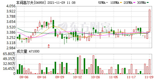 格隆汇11月29日丨本间高尔夫(6858.HK)大涨逾16%,报3.95港元创近四个月新高,总市值24亿港元。