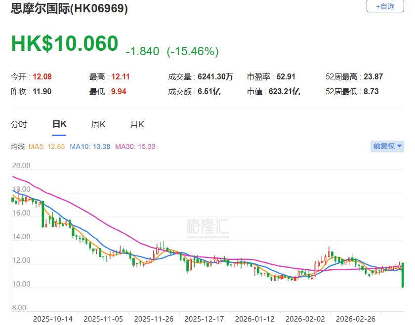 格隆汇3月18日|思摩尔(6969.HK)盘中大跌超16%,报9.94港元。消息面上,公司昨晚公布,截至去年底止全年收益142.56亿元,同比增长20.8%;溢利10.62亿元,同比下跌18.5%;派末期股息20港仙。