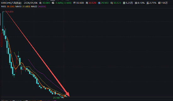 2025年10月,被称为“高端中国茶第一股”的八马茶业成功登陆港交所,上市初期股价一度表现强劲,发行首日公司股价增87%至93.35港元/股。然而好景不长,上市仅一个多月后,其股价便掉头向下并跌破发行价,截至2026年1月9日收盘,公司股价已跌至29.12港元/股,盘中更是创下了29.04港元/股的新低。市场投资者情绪剧烈转变、纷纷用“脚”投票背后,八马茶业经营暗含何种隐忧?