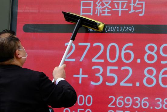 日经平均指数周二大幅上涨,收盘张2.66%,报27,568.15点,达到1990年8月以来、约30年零4个月的最高点。美国通过新一轮刺激法案带来利好,短线投资者的买盘推动股价加速上升。