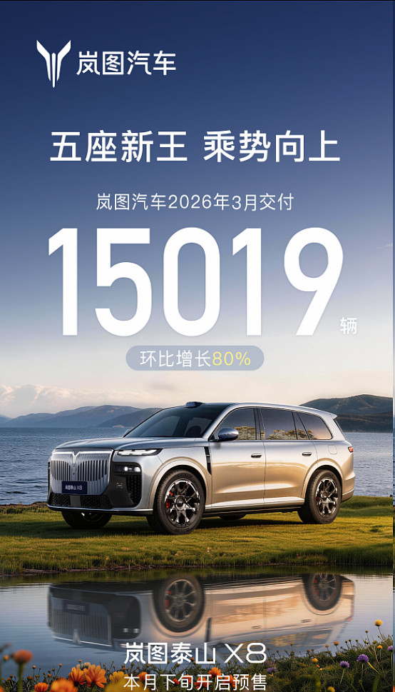 而在4月下旬,岚图打造的“五座新王”岚图泰山X8亦将开启预售。该车型已在岚图汽车港股上市当日首发亮相,其搭载华为乾崑896线双光路图像级激光雷达+3固态激光雷达方案,首发华为双15.6英寸智慧双联屏,以“622庭院级标准”即6.1平米座舱空间、可容纳2米大床、后排双享零重力座椅,重新定义大五座SUV市场规则。