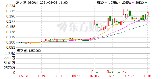 赏之味(08096.HK)发布公告,截至2021年6月30日止三个月(第一季度),集团收益约为1330万港元,同比增加约2.3%。亏损约为110万港元,而2020年同期则溢利约30万港元。基本每股净亏0.22港仙;无派息。