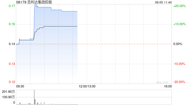 百利达集团控股(08179)早盘涨幅扩大,上涨16.55%,现报0.169港元,成交额104.000万港元。