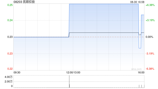 凯顺控股(08203)发布截至2024年6月30日止6个月中期业绩,收入5.02亿港元,同比增长210.47%;期间收益372.5万港元,同比扭亏为盈;公司拥有人应占亏损8.3万港元,同比收窄99.5%;每股亏损0.01港仙。