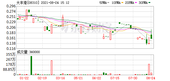 大丰港(08310)升41.73%,报0.197元,升穿20天线(0.182元),最高价0.197元,创1个月新高,最低价0.161元;成交35万股,成交金额5.9万元;主动买沽比率65:35,资金净主动流入1.71万元。