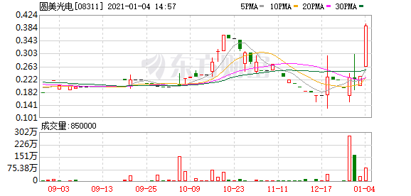原标题:《异动股》圆美光电升逾68%突破250天线,报0.39元