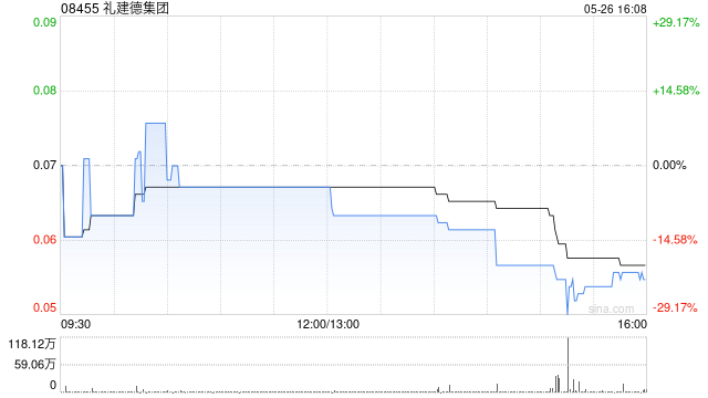 礼建德集团(08455)发布公告,于2025年5月26日,公司拟配售最多1.60亿股新股份,占经悉数配发及发行配售股份扩大后的已发行股份总数约16.67%。配售价每股配售股份0.045港元,较5月26日收市价每股0.056港元折让约19.64%。
