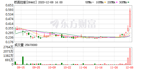 原标题:《异动股》桥英(08462)涨近69%,报0.59元