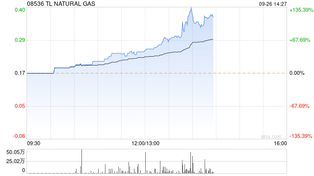 TL NATURAL GAS(08536)午后放量飙升114.71%,现报0.365港元,成交额257.236万港元