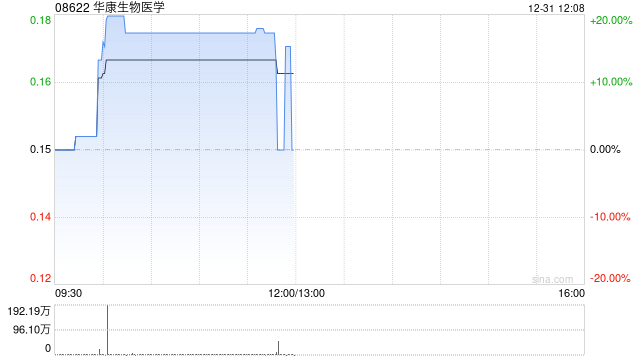 华康生物医学(08622)公布,于2024年12月31日,该公司拟透过配售代理按每股配售股份 0.126 港元的价格向不少于六名独立承配人配售最多1亿股新股份,配售价较2024年12月31日收市价每股 0.150 港元折让约 16.00%。