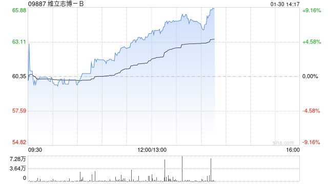 维立志博-B(09887)午后股价上涨8.78%,现报65.65港元,成交额5281.46万港元。