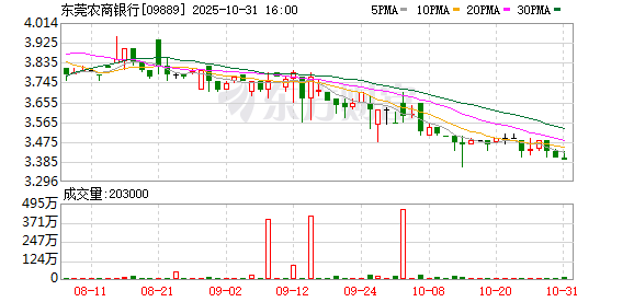 10月31日,东莞农商银行(09889)发布公告,披露截至2025年9月30日的第三季度财务及运营数据。