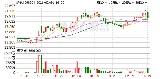 贪玩(09890)发布公告,2026年2月24日,公司回购股份75万股,回购金额为1476万港元,回购价格在19.12港元至20.36港元之间。根据回购授权的决议,公司可回购的股份总数为5331万股,已回购股份1004万股,占回购授权决议通过时已发行股份的1.88%。