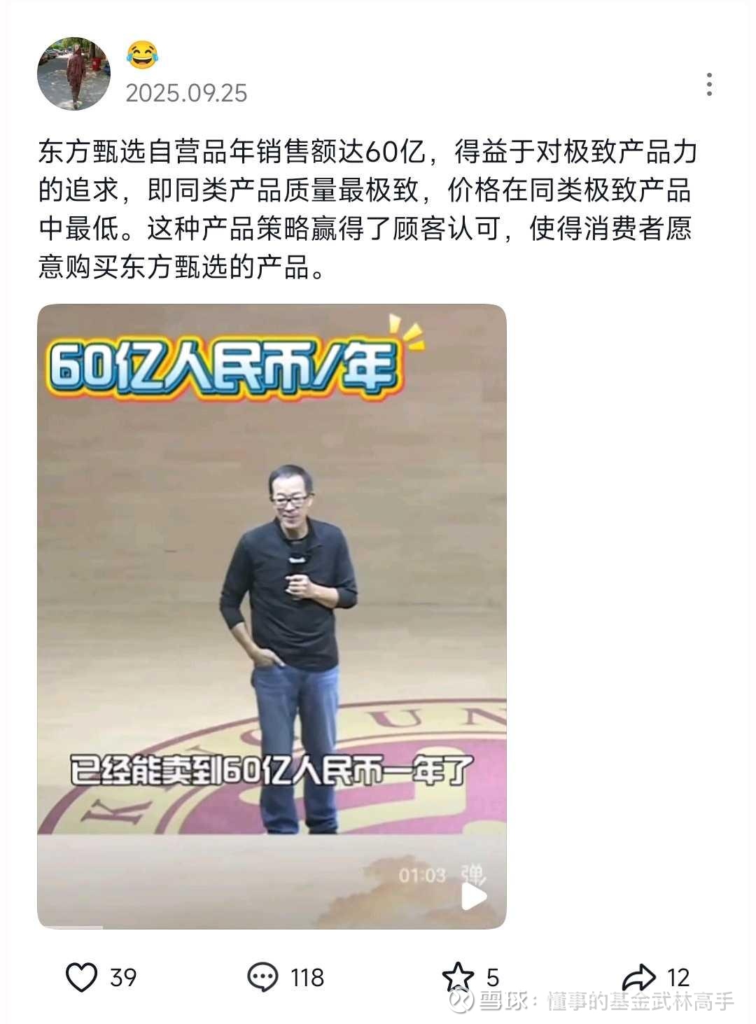 新东方学费积分可以换成甄果用,这个事对东方甄选的快速发展作用很大,因为这个群体和甄选的目标人群很接近,关注饮食健康,中产阶层,新东方每年几百万的学生家长,有百分之10的渗透率就不得了。