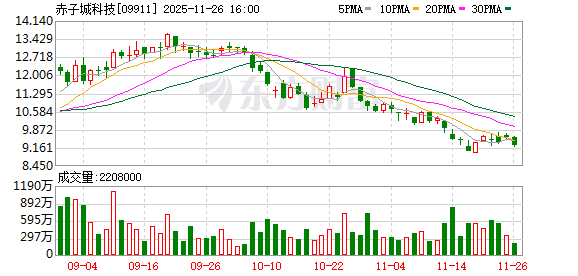 赤子城科技(09911)发布公告,Three D Partners Limited于2025年11月20日至11月26日购买了合共205万股股份,购买股份占目前已发行股份总数的约0.15%。此次股份的每股平均代价为9.46港元,总购买代价为1941万港元。