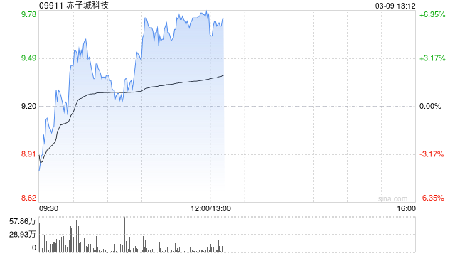 赤子城科技(09911)盘中涨超6%,截至发稿,股价上涨5%,报9.66港元,成交额1.54亿港元。