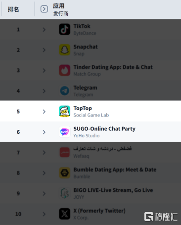 在陪伴社交赛道,SUGO 已成为全球范围内备受瞩目的标杆型产品;TopTop 则凭借 UGC 生态优势,在沙特阿拉伯等中东北非部分市场逐步成长为“国民级应用”,并斩获 Sensor Tower APAC Awards “最佳社交游戏平台” 奖项。根据 Sensor Tower 数据,TopTop 和 SUGO 分别位列 2025 年中东社交网络收入排行榜第 5 位和第 6 位。