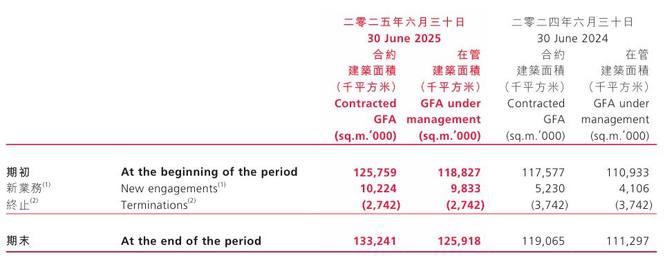 来到2025年,时代邻里“持续调整在管物业组合以追求较佳利润及回款表现”。上半年,物业管理服务总合约建筑面积约为1.33亿平方米;物业管理在管建筑面积约1.26亿平方米,在管物业管理项目共930个。