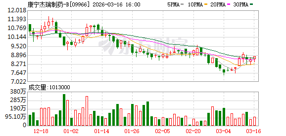 3月16日,康宁杰瑞制药(09966)发布公告,公司自主研发的程序性死亡配体(PD-L1)/血管内皮生长因子受体2(VEGFR2)双特异性抗体偶联药物(ADC)JSKN027治疗晚期恶性实体瘤的I期临床研究,已完成首例患者给药。
