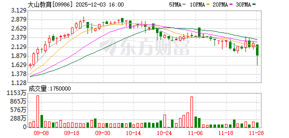 大山教育(09986)发布公告,宣布香港交易及结算所有限公司及香港联合交易所有限公司对公司股份买卖进行暂停,自2025年12月3日上午9时起生效。