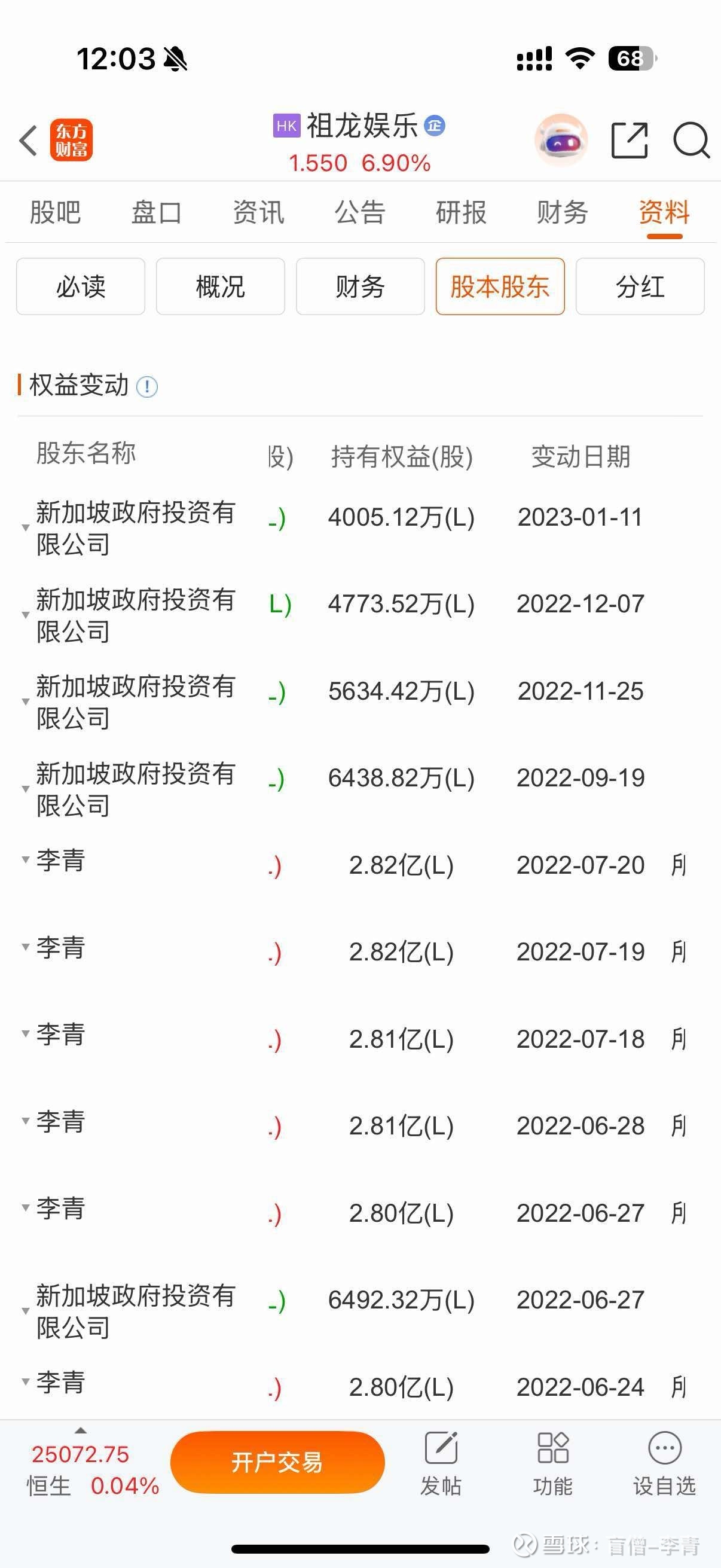 别瞎说啊。自从2022年之后他再也没加仓过,他他买股票是会公示的。你别造谣。