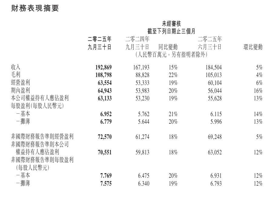 腾讯控股第三季度营收1,928.7亿元人民币,预估1,888亿元人民币。