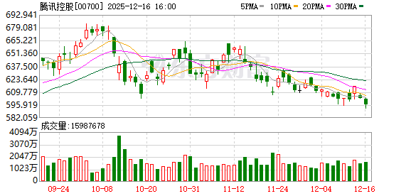 腾讯控股于12月16日以约6.4亿港元回购106.7万股股份。