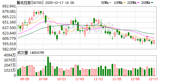 腾讯控股于12月17日回购105.7万股股份,每股回购价格为595港元-605.5港元,耗资约6.4亿港元。