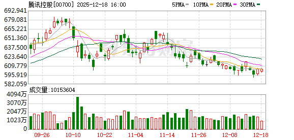 腾讯控股于12月18日回购105.5万股股份,耗资约6.4亿港元。