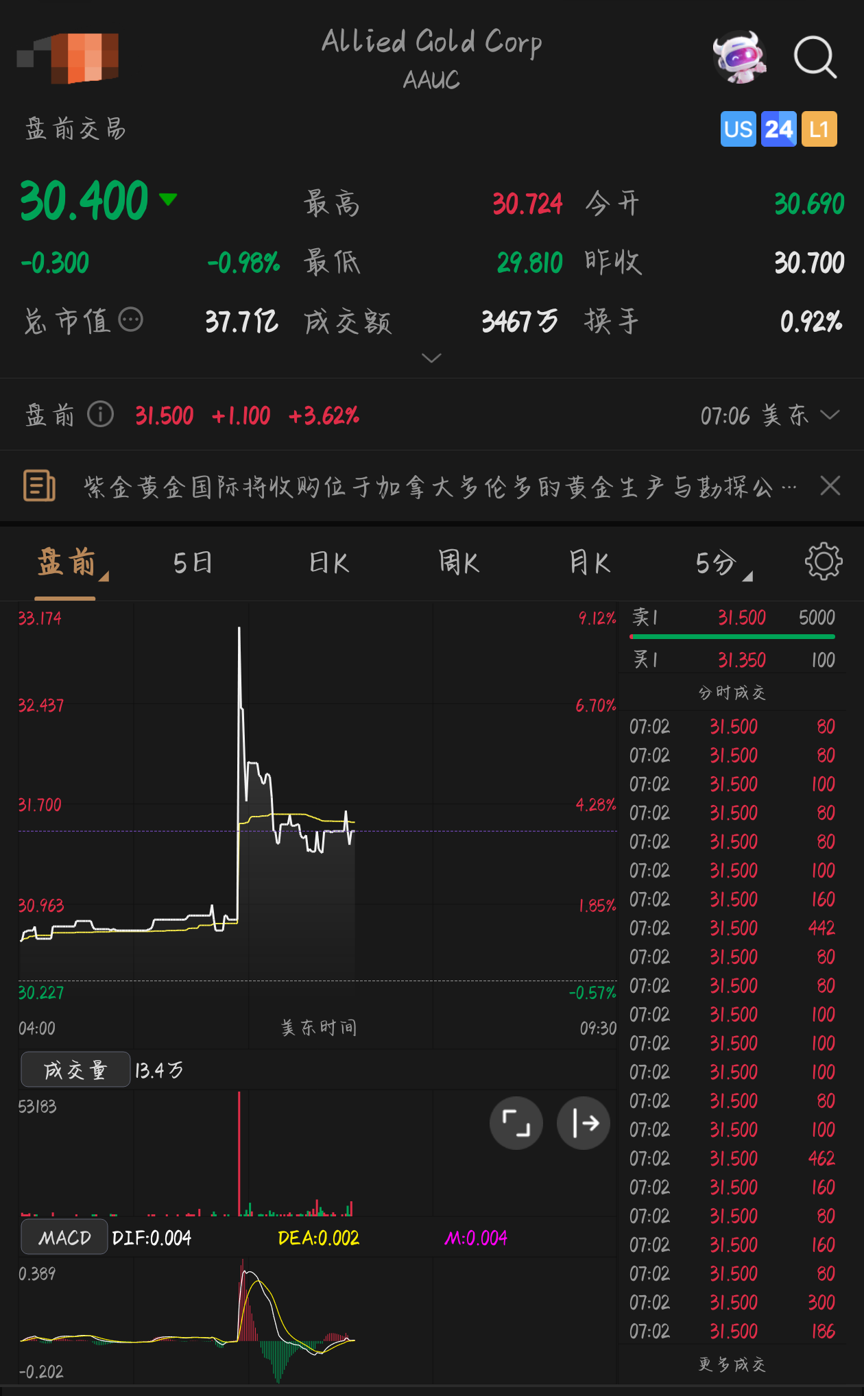 1月26日,Allied Gold美股盘前一度上涨9%。