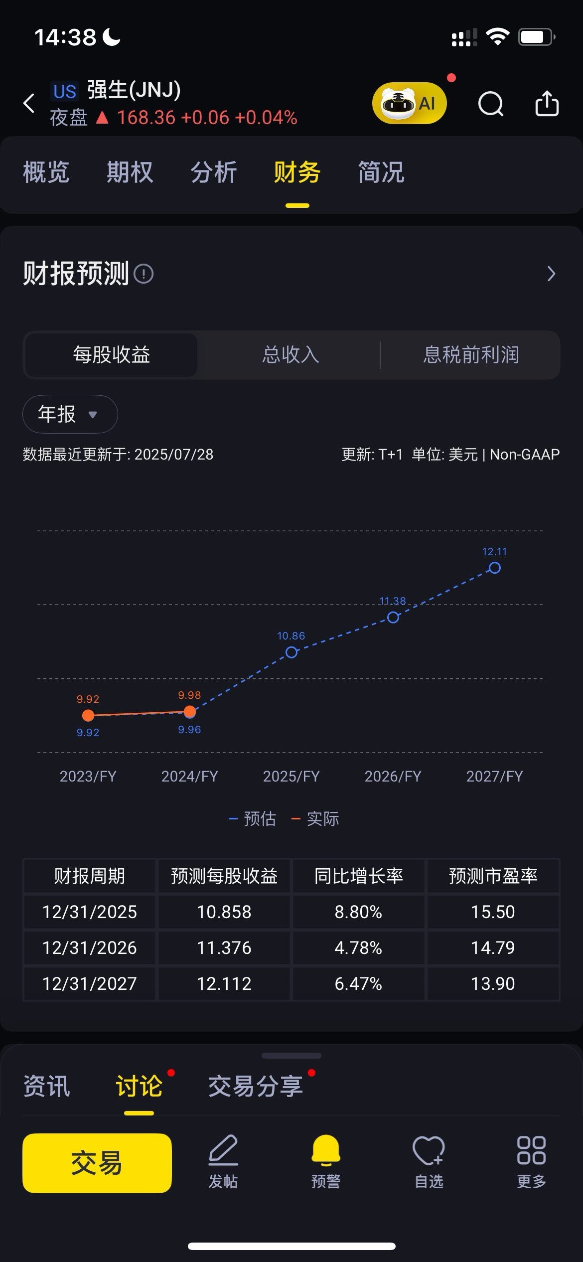 雅培有非经常性收益,强生还算便宜(成长性预期较雅培低),蹲十多二十位分析师的三年后预期10P E开买