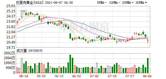财报公布后,巴里克黄金盘前跌超1%。