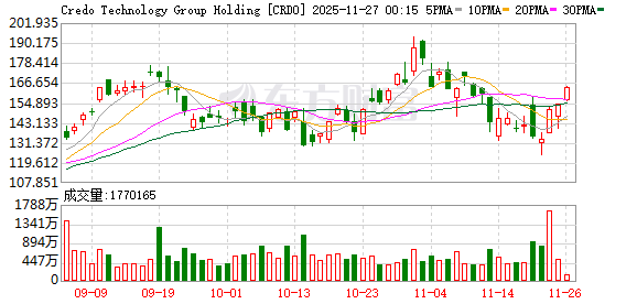 美股光通信板块震荡上行,Applied Optoelectronics、Credo Technology涨6%,Astera Labs涨超4%,Lumentum涨超3%再创新高。