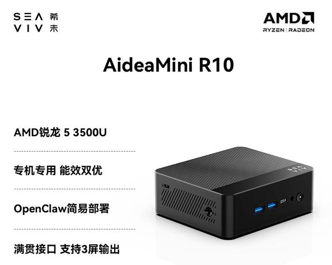 IT之家 3 月 25 日消息,SEAVIV 希未今日宣布,其基于 AMD 锐龙 5 3500U "Zen+" 处理器的“龙虾盒子”迷你主机 AideaMini R10 正式上市,准系统(无存储)版本 879 元。