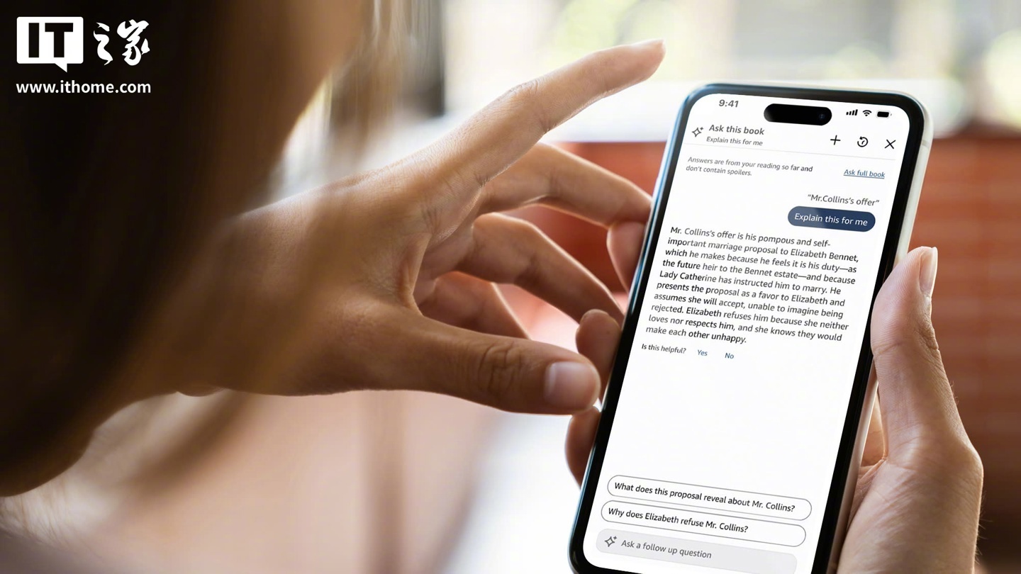 【亚马逊 Kindle 新功能“向本书提问”登陆美国 iOS 应用:可帮你回忆小说情节且不会剧透】亚马逊Kindle推出新功能“Ask this Book”,用户可在阅读时高亮文字并提问,AI助手将提供无剧透的即时回答。该功能已在美国Kindle iOS应用上线,覆盖数千本英文畅销书。亚马逊计划明年扩展至Kindle设备和An……