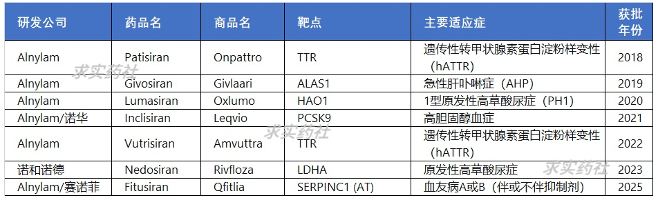目前全球共有7款小干扰RNA(siRNA)药物获批上市。