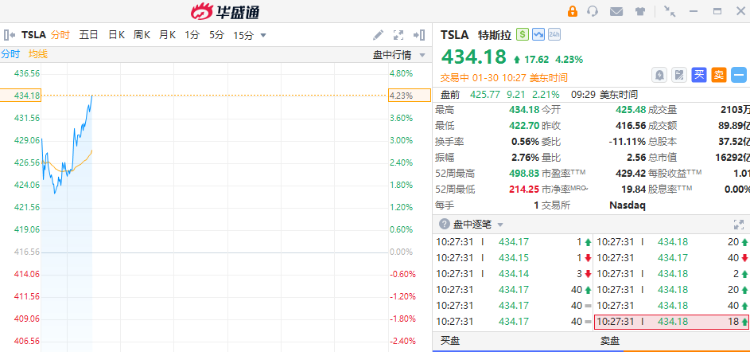 华盛资讯1月30日讯,美股三大指数跌势缩窄,特斯拉逆势大涨4%,据报SpaceX考虑与公司或xAI合并,太空概念股走弱,Rocket Lab、 $ASTS 跌超3%, $RKT 大跌16%, $ASTS 跌超4%。