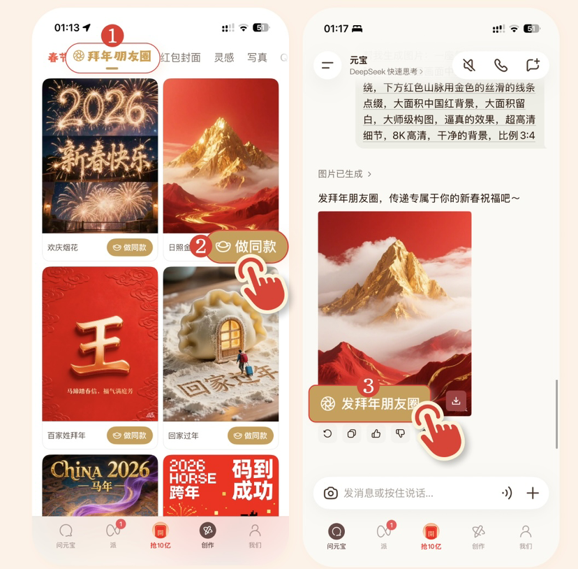 头图为元宝朋友圈拜年活动。由腾讯供图