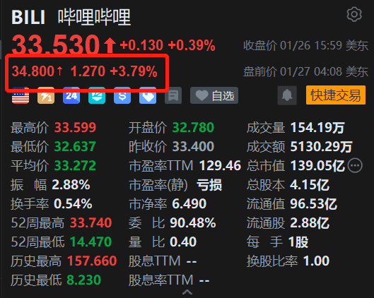 哔哩哔哩港股今日收涨近6%,带动哔哩哔哩(BILI.US)美股盘前涨3.8%。消息上,B站加入春晚大战,首办“大年初一联欢会”。1月27日,B站首次官宣新IP“2026 bilibili大年初一联欢会”。B站联欢会邀请了新老喜剧人、国民艺人及新生代演员共同参与,旨在打造一场面向全年龄段观众的合家欢晚会。在本次联欢会上,相声、小品、杂技等传统的说学逗唱形式都会以B站创意整活的新面貌回归,素描喜剧(sketch)、说唱、宅舞等年轻人喜闻乐见的形式也将同台亮相。