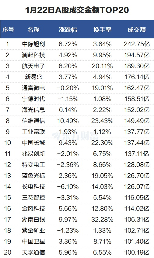 1月22日,上证指数涨0.14%,收报4122.58点;深证成指涨0.5%,收报14327.05点;创业板指涨1.01%,收报3328.65点。