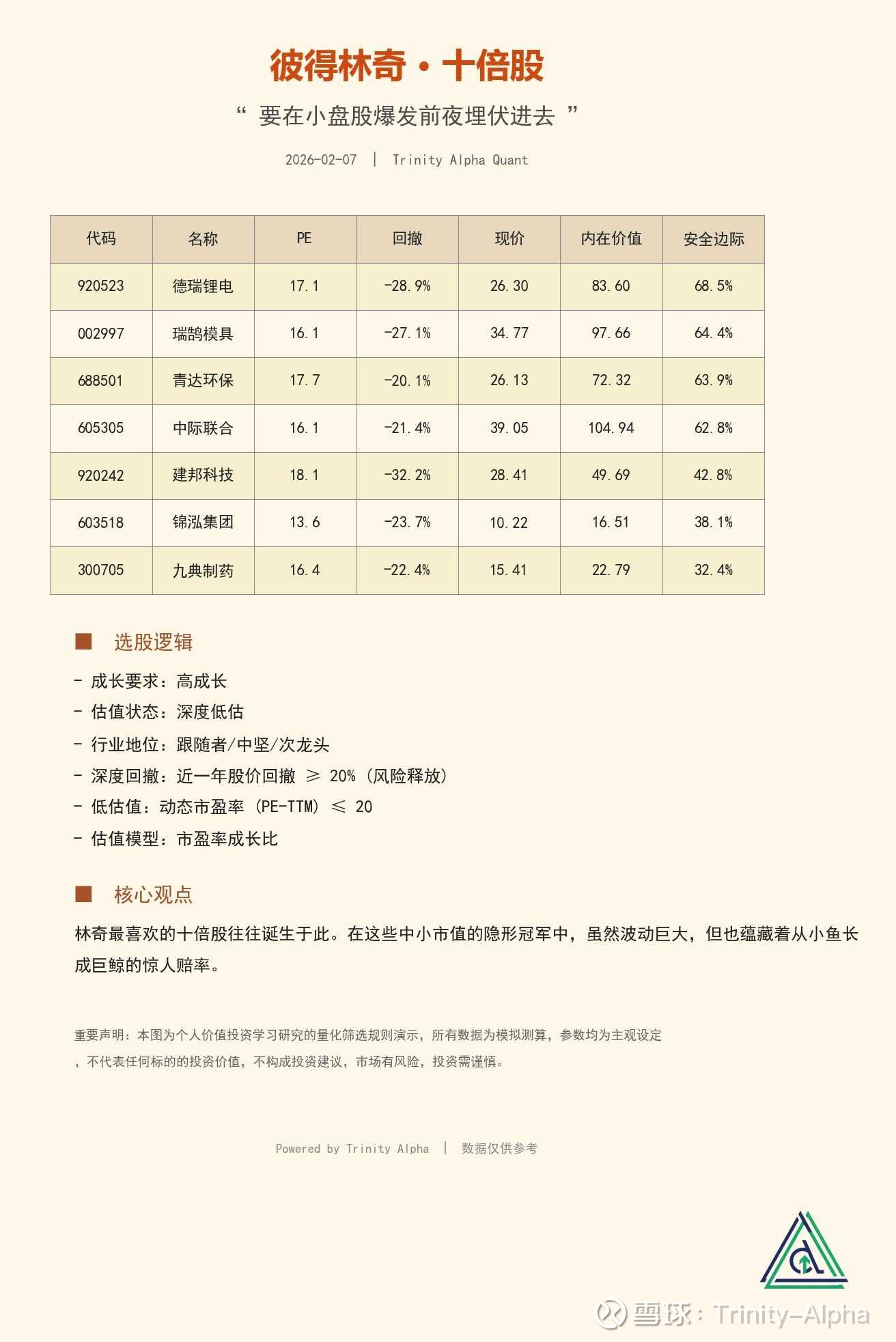 上周寻找10倍股,有网友讲重仓博10倍股,纯赌博,事前都是概率,如果是配置仓,多点出击,博成功一个,也没啥意义。