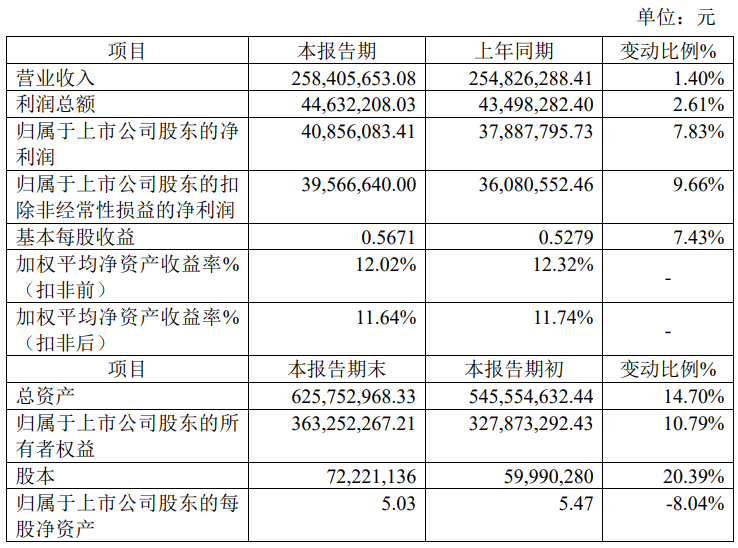 2月11日,常辅股份(920396)发布公告,报告期内,公司实现营业收入预计为2.58亿元,同比增长1.40%;归母净利润预计为4086万元,同比增长7.83%。