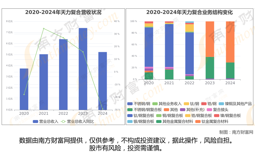 (如上图)2024年天力复合公司营业总收入5.23亿,同比增长-29.28%,近五年复合增长率为8.74%。