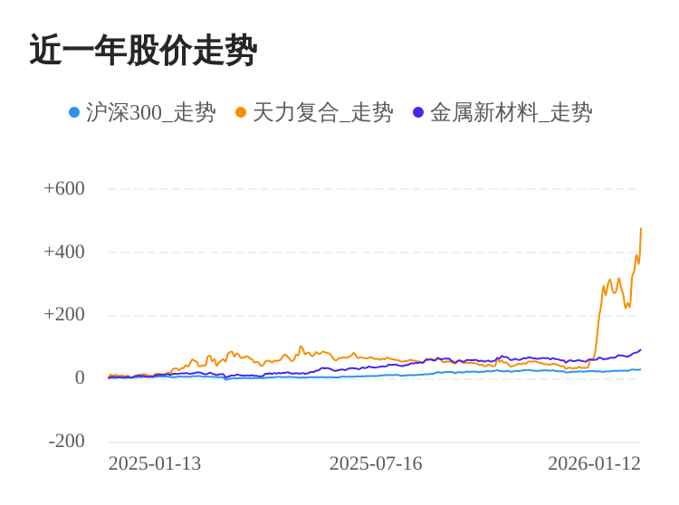 01月12日,天力复合股价大涨。截至今日收盘,天力复合上涨24.96%,收盘价为119.99元,收盘价创历史新高。