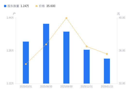 近一年(2024年12月31日至2025年12月31日),鼎智科技A股股东户数从1.1万户,增加至1.28万户,增幅16.69%,区间股价上涨35.83%。