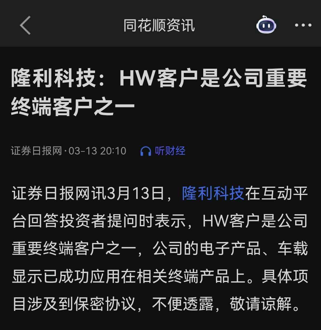 华为也跟进了,作为深度绑定华为概念的力源信息,明天是不是该动起来了呢。