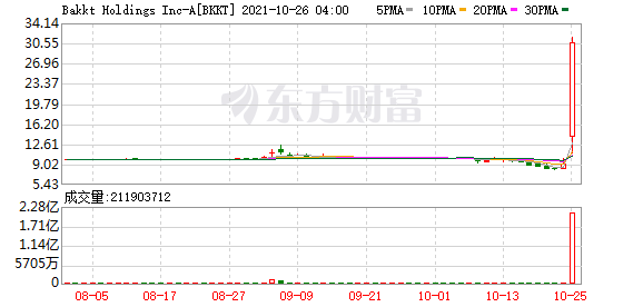 数字货币交易平台巴克特控股公司(BKKT.N)盘前涨超60%,该股昨日收涨逾230%。
